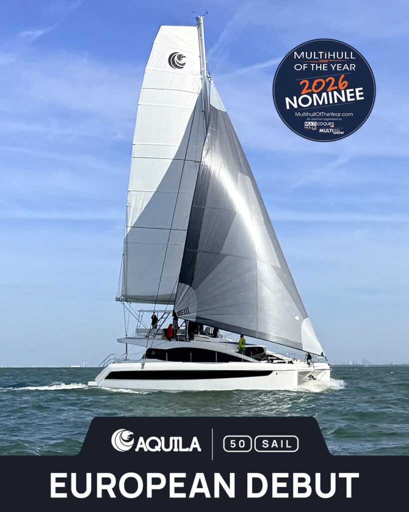 Μετά το παγκόσμιο ντεμπούτο του στο Miami, το νέο Aquila 50 Sail φτάνει στο International Multihull Show στη La Grande Motte (22–26 Απριλίου), σηματοδοτώντας την ευρωπαϊκή του πρεμιέρα και ένα νέο κεφάλαιο για το brand.