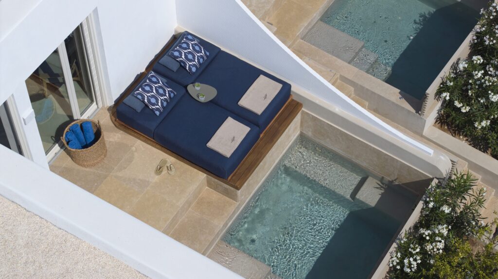 Οι Avant Mar Infinity Suites, που παρουσιάστηκαν για πρώτη φορά τον περασμένο Αύγουστο, επανέρχονται δυναμικά, προσφέροντας μια πιο ιδιωτική εκδοχή πολυτέλειας μόλις 200 μέτρα από το βασικό ξενοδοχειακό συγκρότημα. Οι πέντε σουίτες διαθέτουν ανεμπόδιστη θέα στο Αιγαίο, δημιουργώντας την αίσθηση ότι αιωρούνται πάνω από τη θάλασσα, με τον ήχο των κυμάτων να λειτουργεί ως φυσική προέκταση της εμπειρίας διαμονής.