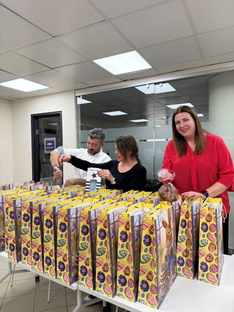 Για δεύτερη συνεχόμενη χρονιά, η εταιρεία ανέλαβε συμβολικά τον ρόλο του «νονού», με τα στελέχη της να ετοιμάζουν πασχαλινά πακέτα για τα παιδιά. Λαμπάδες, σοκολατένια αυγά και τσουρέκια έγιναν η αφορμή για μικρές στιγμές χαράς, μεταφέροντας κάτι πιο ουσιαστικό από το ίδιο το δώρο: την αίσθηση φροντίδας.