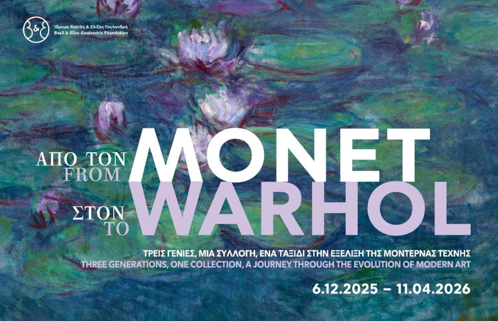 Το Ίδρυμα Βασίλη & Ελίζας Γουλανδρή παρουσιάζει από το Σάββατο 6 Δεκεμβρίου 2025 έως τις 11 Απριλίου 2026 τη νέα του μεγάλη έκθεση με τίτλο «Από τον Monet στον Warhol», ένα συναρπαστικό ταξίδι 130 χρόνων στην ιστορία της τέχνης, μέσα από 83 αριστουργήματα και 45 διεθνείς καλλιτέχνες.