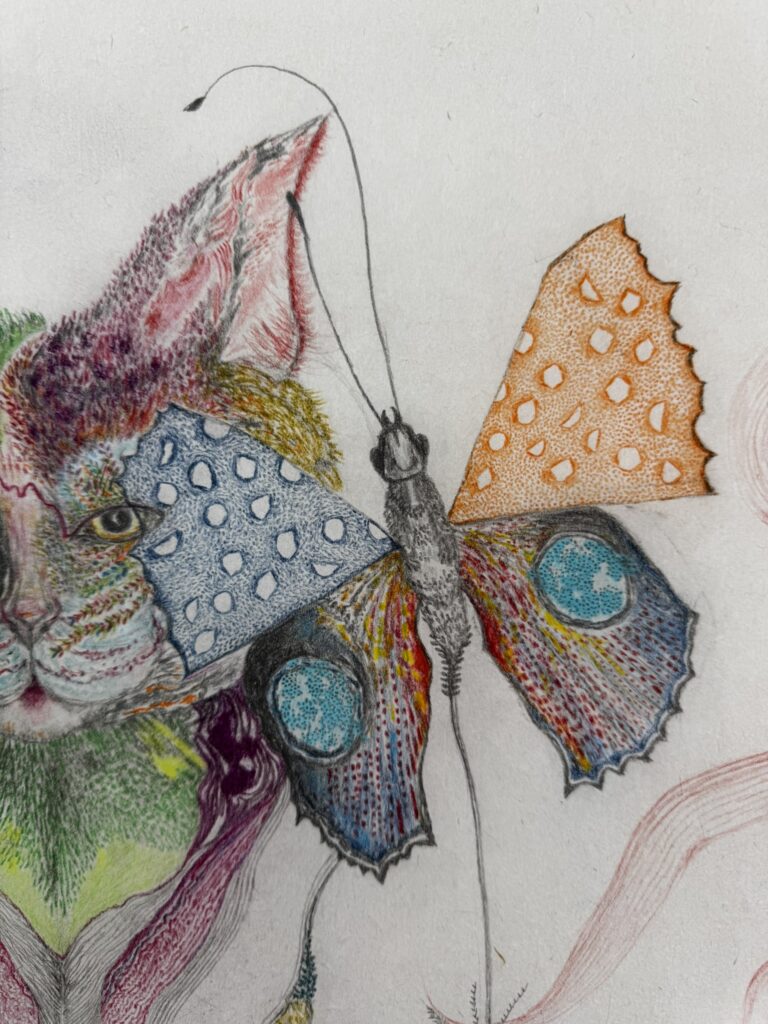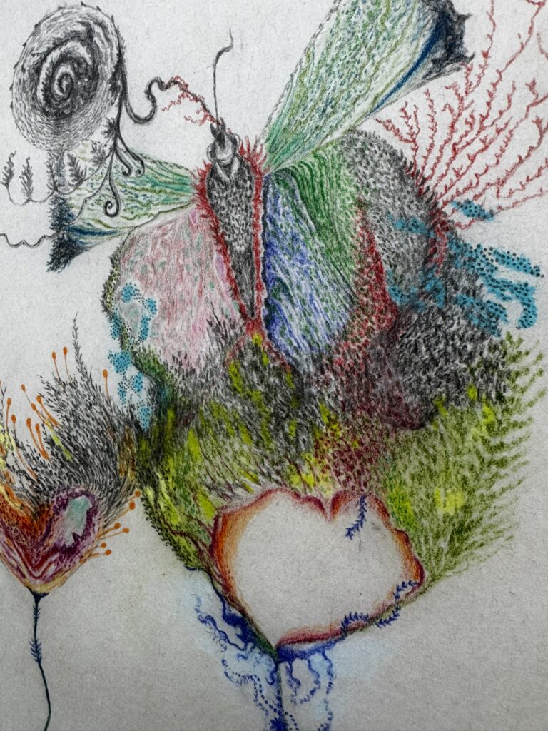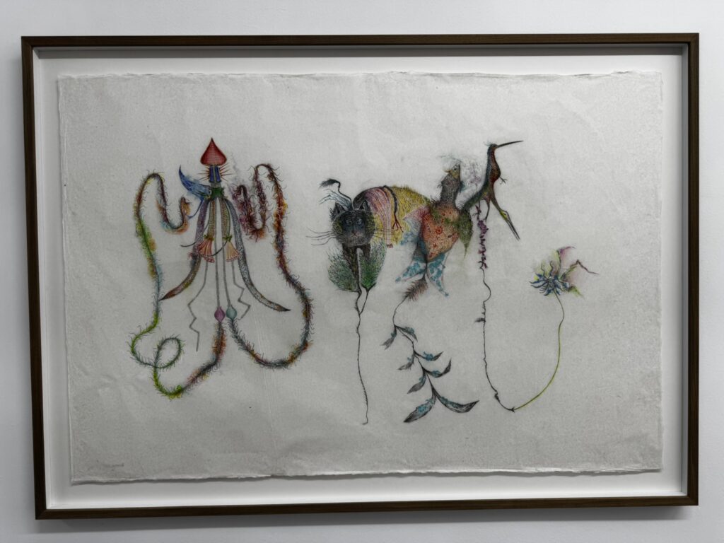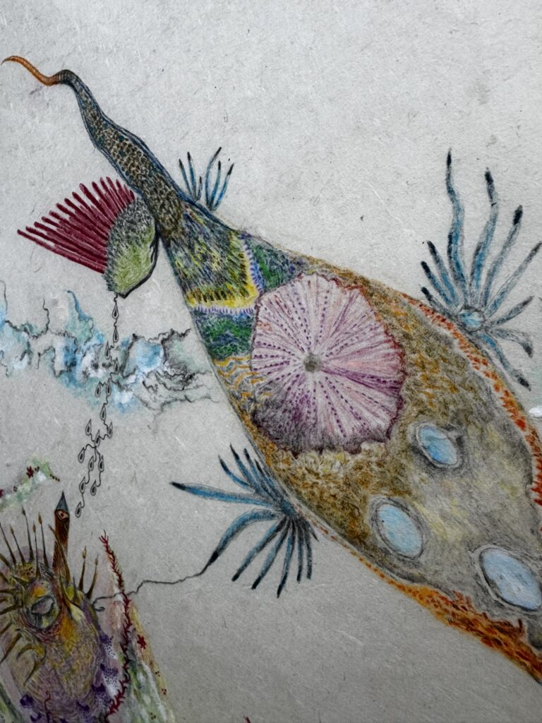 Στα έργα της Bartolini, οι φιγούρες κινούνται διαρκώς ανάμεσα σε διαφορετικές καταστάσεις. Από πτηνό σε ψάρι, από αέρα σε νερό, δημιουργώντας έναν ενδιάμεσο κόσμο όπου τα όρια παραμένουν ανοιχτά και ρευστά.