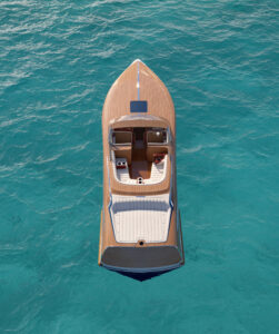 Every detail reflects a balance of form and function: the Mantis™️ Reveal, a discreet stern platform that unfolds gracefully for direct water access; the handcrafted woodwork that channels the spirit of classic runabouts; and the technological finesse that turns tradition into performance.