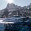 The layout of this boat was conceived by the Shipyard to emphasize and make the most of the spaces, both outside and inside, guaranteeing maximum comfort and an unparalleled welcome, starting from the transom with the elegant beach area fully equipped and furnished with a lounge sofa and bar and a sliding smoked glass door overlooking the sea. At the stern, there is also a spacious garage that can accommodate a 6-meter tender and two jet skis.