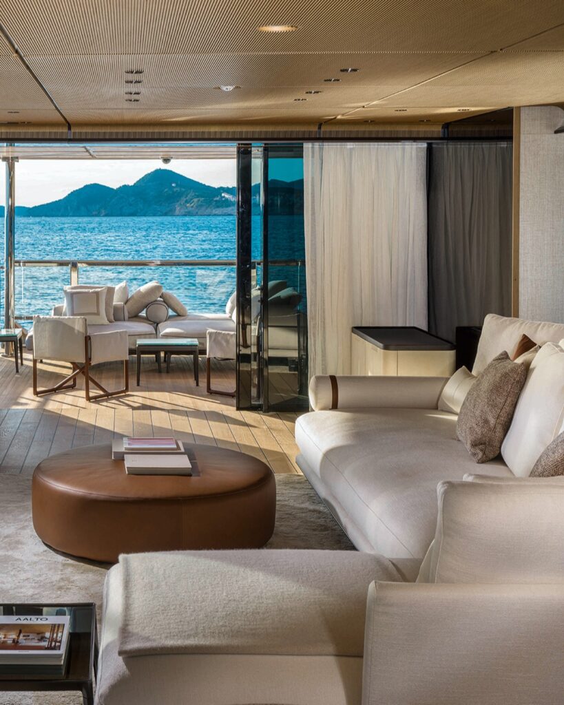 Designed by ACPV ARCHITECTS Antonio Citterio Patricia Viel, the yacht brings together architectural clarity and sophisticated interiors that emphasise comfort, light and spatial continuity. The project reflects ACPV’s distinctive design language, where minimalism and precision meet the relaxed elegance of life on board.