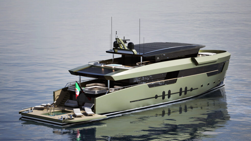 Further details will be published in due course, but GX has revealed that key features will include a lavish owner’s suite at main deck level with VIP cabins below. Options also include: 360 views on an enclosed sundeck saloon for extreme weather conditions or sundeck owners’ cabin with private deck, keeping in mind GX Superyachts unmistakable elegant lines. A firepit lies at the centre of a foredeck lounge, while the aft deck has been extended to create plenty of room for a comfortable cockpit, a Jacuzzi and lots of storage for tenders and toys. From a submersible to a land vehicle, the possibilities here are very much down to the individual owner. There is even the option of an eagle’s nest under the mast for observing land- and seascapes.