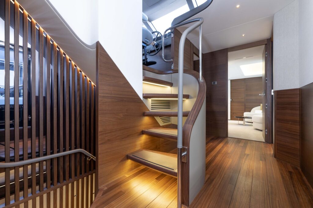 Numerous interior configurations are possible thanks to the yacht’s innovative layout and the increased volume afforded by its hull design, while an extensive range of options packages ensures customer choice is both simplified and wide-ranging.