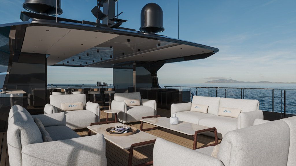 With a range of approximately 4,000 nautical miles and a top speed of 16 knots, Petra is conceived as a true ocean-going yacht.